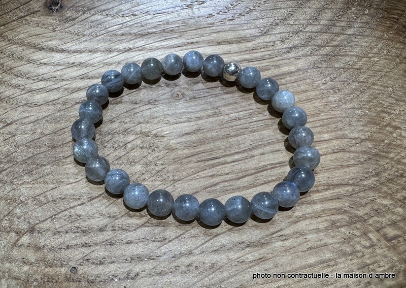 Bracelet Labradorite 6mm + Perle Argent 925 mil