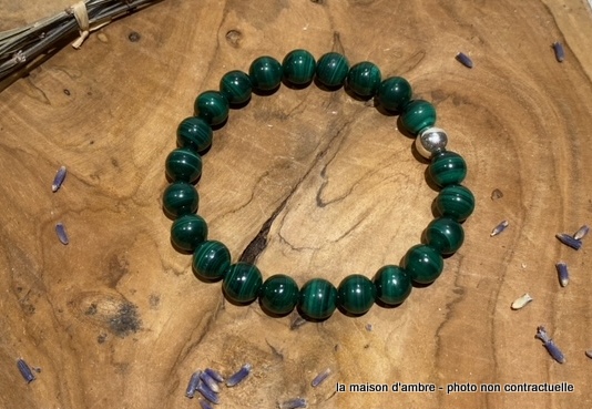 Bracelet Malachite 8mm + Perle Argent 925mil