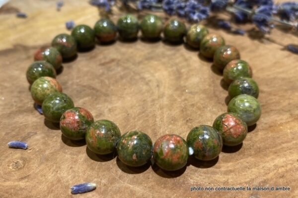 L’unakite permet de se retrouver face à soi-même après avoir levé les blocages inconscients, développe l’acceptation de soi, apprends à relativiser et prendre du recul. Aide également lors de problèmes digestifs. C’est une pierre de rencontre et d’amitié. Elle est liée au chakra du coeur.