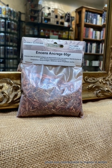 L’encens « Ancrage » aide à s’ancrer dans le moment présent, se (re)connecter à soi-même. Apporte stabilité, prise de recul et forte protection. Encens chaleureux & enveloppant.