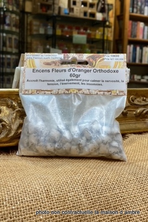 L’encens Grec Fleurs d’Oranger accroît l’harmonie, utilisé également pour calmer la nervosité, la tension, l’énervement, les insomnies. Favorise la détente et relaxation. Utilisez les grains d’encens sur un charbon ardent ou dans un brûle parfum avec une bougie chauffe-plat (pour éviter l’inconvénient de la fumée du charbon).
