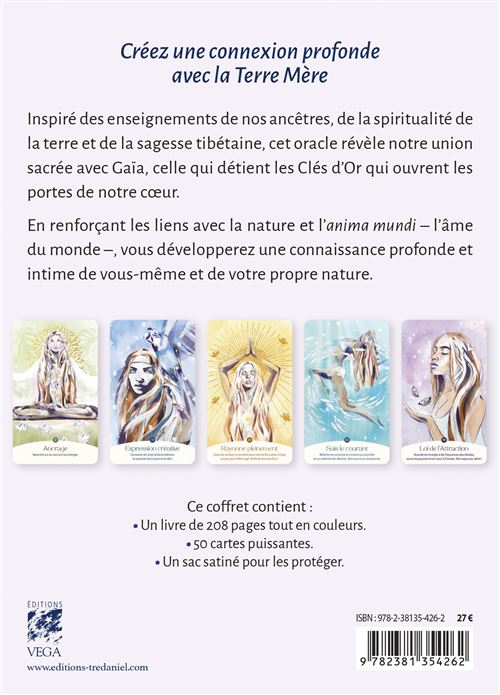 Inspiré des enseignements de nos ancêtres, de la spiritualité de la terre et de la sagesse tibétaine, cet oracle révèle notre union sacrée avec Gaïa, celle qui détient les Clés d’Or qui ouvrent les portes de notre cœur.