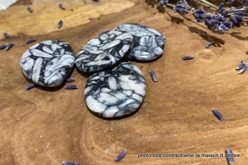 La pinolite est une pierre apaisante, permettant de lâcher les tensions mentales. Elle est conseillée afin de canaliser la colère et favoriser l’ouverture vers les autres. Régulateur émotionnel. Elle aide à la pratique de la méditation, afin de trouver un équilibre entre intuition & enracinement. Harmonisation du yin (féminin) et du yang (masculin) de l’individu.