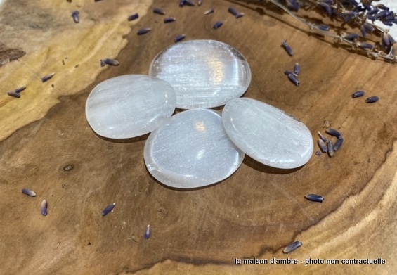 La sélénite calme le système nerveux. Accroît la volonté . Aide à la télépathie. Pierre douce et apaisante, elle permet de débloquer les situations délicates. Accompagne lors de méditation, apporte sérénité & apaisement mental.